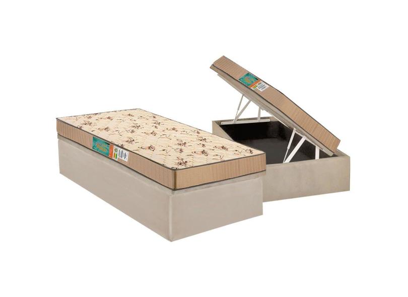Cama Box Bau Solteiro Colchao Espuma Polar D45 Perola Base Crc Suede Clean 88X188