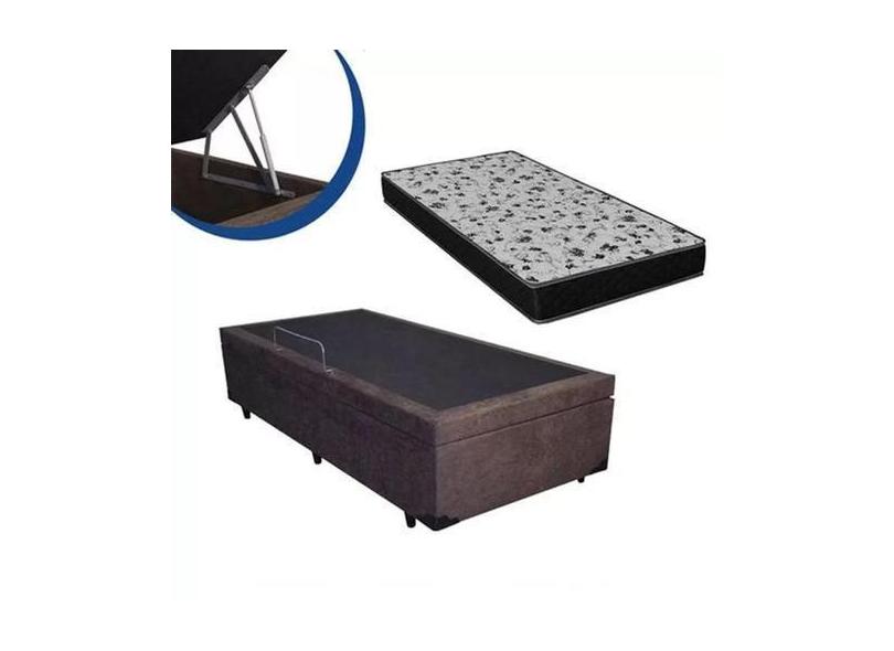 Cama Box Baú Solteiro Colchão Mola Ensacada Acolchões + Box Sintético