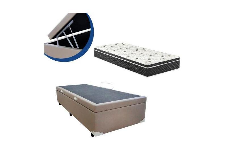 Cama Box Baú Solteiro Colchão Molas Bonnel + Box Sintético Bege 69x88x