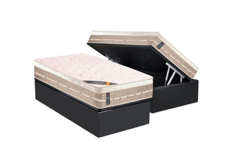 Cama Box Baú Solteiro: Colchão Molas Bonnel Castor Premium Tecnopedic + Base CRC Suede Gray(88x188)