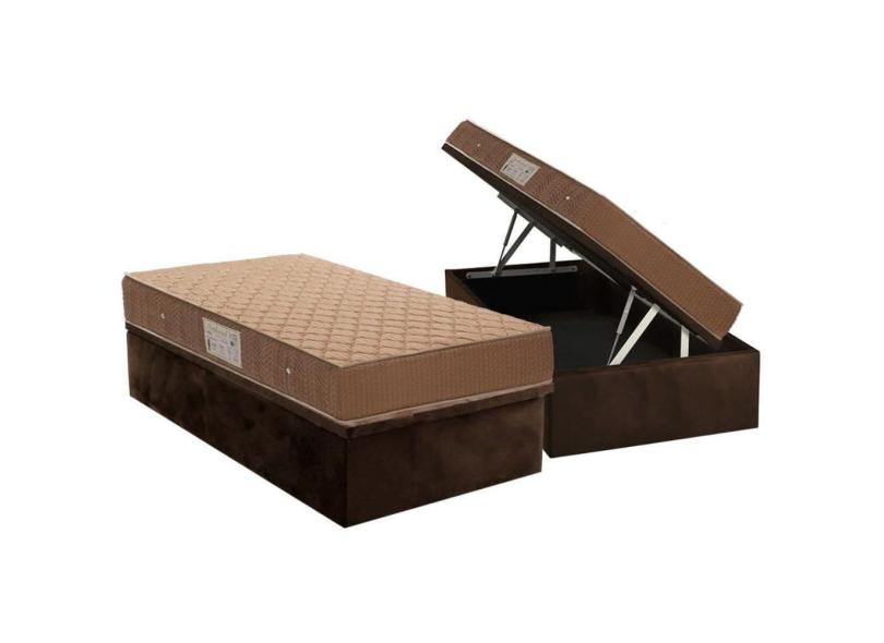 Cama Box Baú Solteiro: Colchão Molas Bonnel Ortobom Nanolastic Orthotel + Base CRC Suede Brown (88x188)