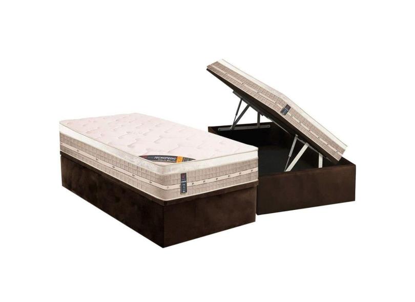 Cama Box Baú Solteiro: Colchão Molas Castor Bonnel Premium Tecnopedic + Base CRC Suede Brown(88x188)