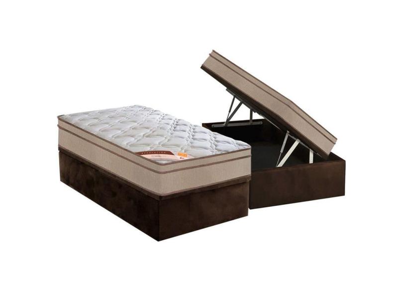 Cama Box Baú Solteiro: Colchão Molas Castor Bonnel Revolution + Base CRC Suede Brown(88x188)