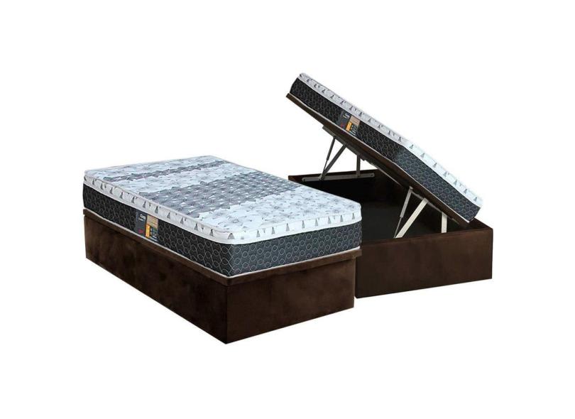 Cama Box Baú Solteiro: Colchão Molas Castor Bonnel System Class One Face + Base CRC Suede Brown(88x188)