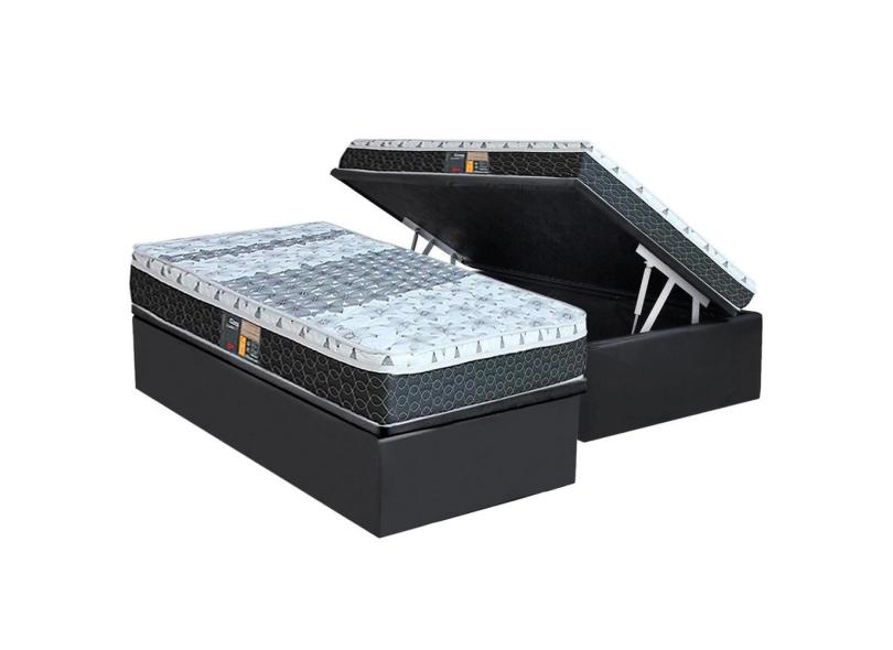Cama Box Baú Solteiro: Colchão Molas Castor Bonnel System Class One Face + Base crc Suede Grey(88x188)