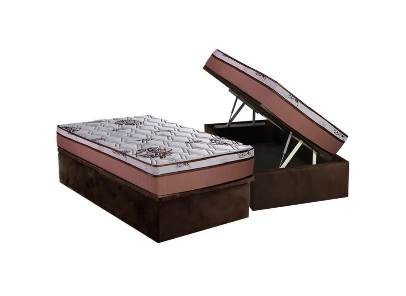 Cama Box Baú Solteiro: Colchão Molas Ensacadas Luckspuma Masterpocket Caribe + Base Crc Suede Brown(88x188)