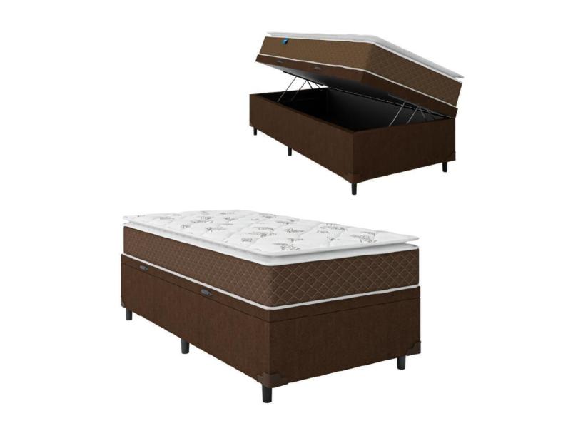 Cama Box Baú Solteiro Colchão Molas Ensacadas Pillow Top Martino 88X188X66Cm Marrom/Branco