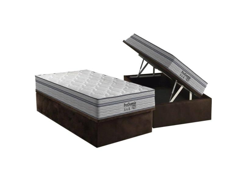 Cama Box Baú Solteiro: Colchão Molas Ensacadas Probel MasterPocket ProDormir Springs Luxo + Base CRC Suede Brown(88x188)