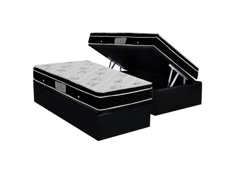 Cama Box Baú Solteiro: Colchão Molas Ortobom Nanolastic Physical Spring + Base CRC Suede Black(88x188)