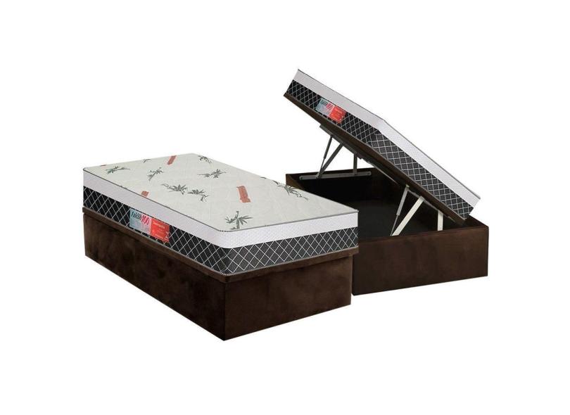Cama Box Baú Solteiro: Colchão Ortopédico Plumatex Falcon Ultra Firme + Base Crc Suede Brown(88x188)