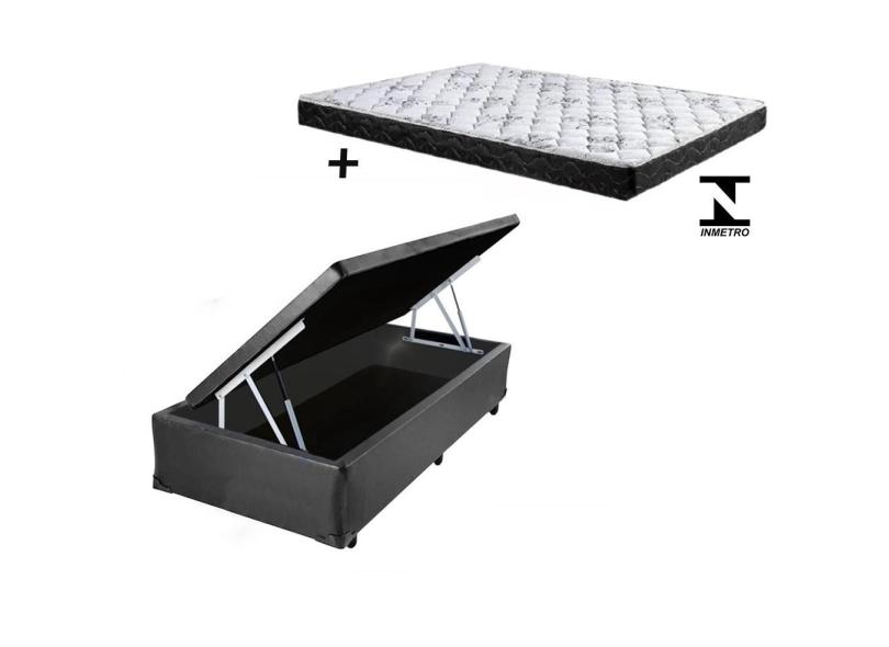 Cama Box Baú Solteiro Conforto Suede Cinza + Colchão Solteiro Conforto Espuma D23 24x88x188