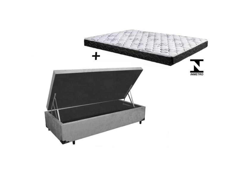 Cama Box Baú Solteiro Conforto Suede Cinza + Colchão Solteiro Conforto Espuma D23 Com eps 16x88x188