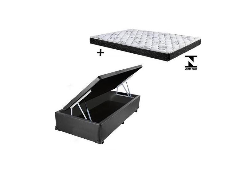 Cama Box Baú Solteiro Dreams Sintético Preto + Colchão Solteiro Dreams