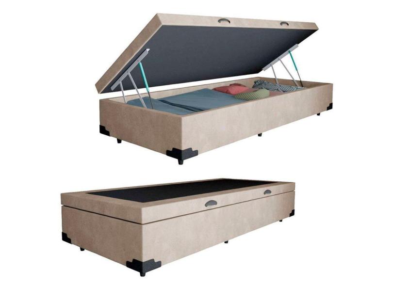 Cama Box Baú Solteiro Jrm Blindado Suede Bege 78x188x42