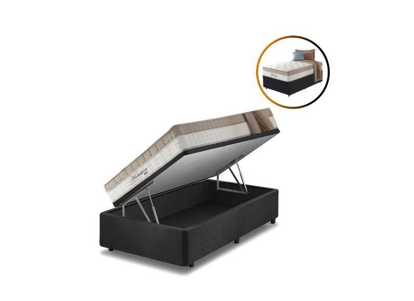 O menor preço encontrado no Brasil para Cama Box Baú Solteiro Preto + Colchão Molas Ensacadas Houston Pillow I atualmente é R$ 2.019,80.