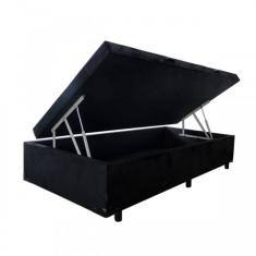 Cama Box Baú Solteiro Preto Suede 88X188x35 - Serra Negra