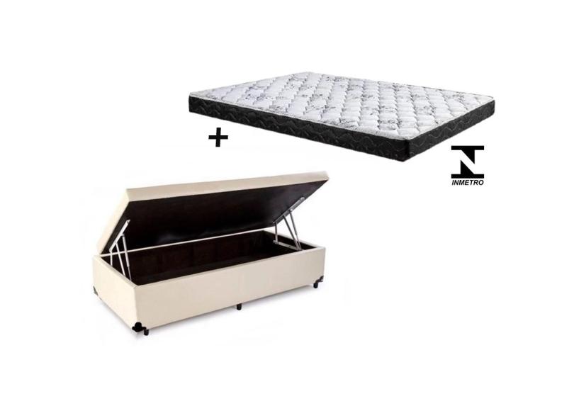 Cama Box Baú Solteiro Resistence Sintético Bege + Colchão Solteiro Resistence Espuma D33 Com eps 20x88x188