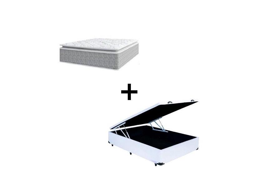 Cama Box Baú Viúva 128 Tecido Sintético Branco Com Colchão Nazar Molas Ensacadas com Pillow Top - Bello Box - Conforto (Espuma da Nasa) Viscoeslástico D33 Cinza
