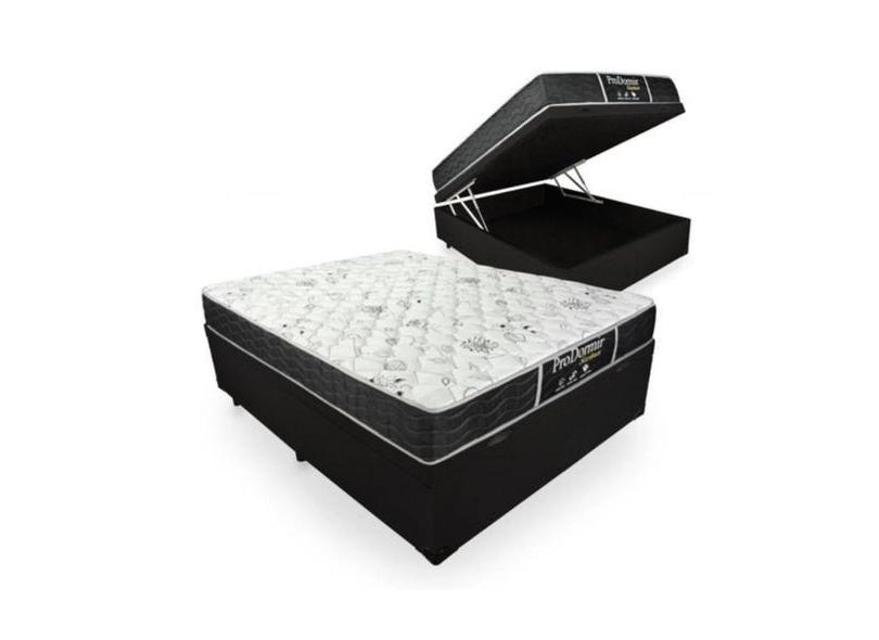 Cama Box Baú Viúva 128 Tecido Sintético Preto Com Colchão De Molas - P