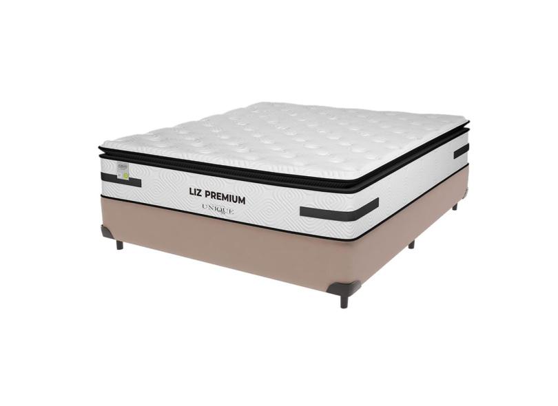 Cama Box Bege e Colchão Casal Liz Premium Molas Ensacadas Unique