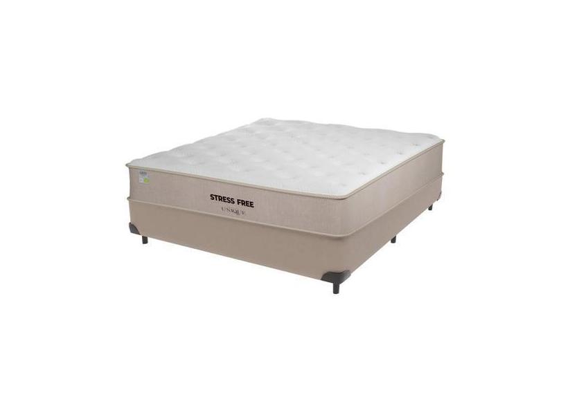 Cama Box Bege E Colchão Casal Stress Free Espuma D28 Unique