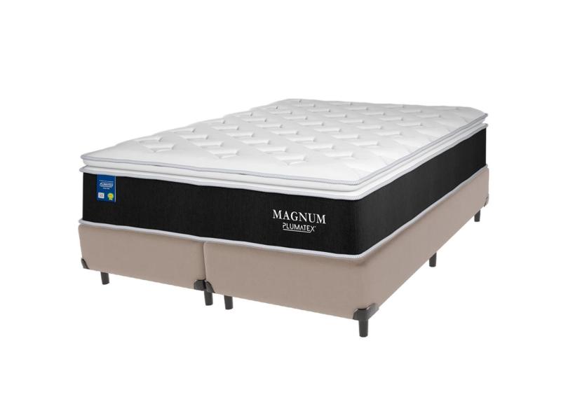Cama Box Bege e Colchão Magnum Molas Ensacadas King Plumatex