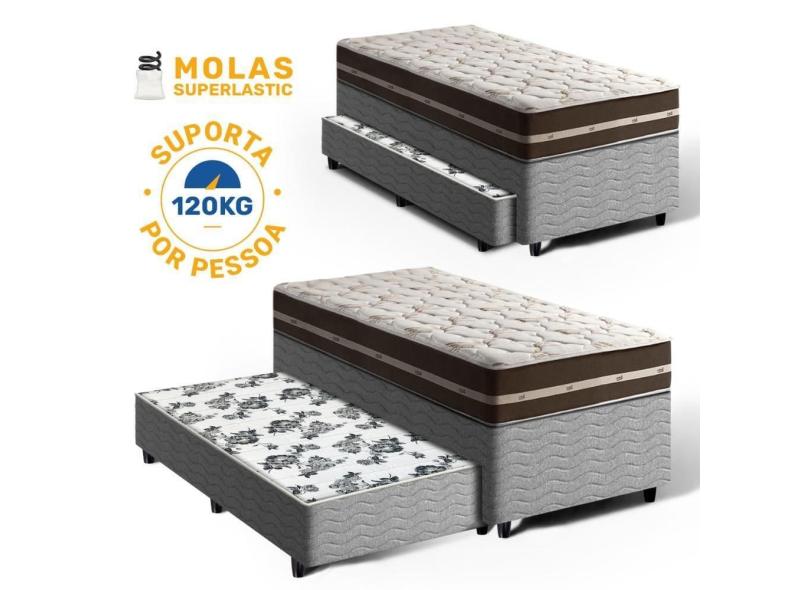Cama Box Bicama com Colchão de Molas Solteiro Anjos Classic Superlastic + Auxiliar de Molas Unique Solteiro 88cm