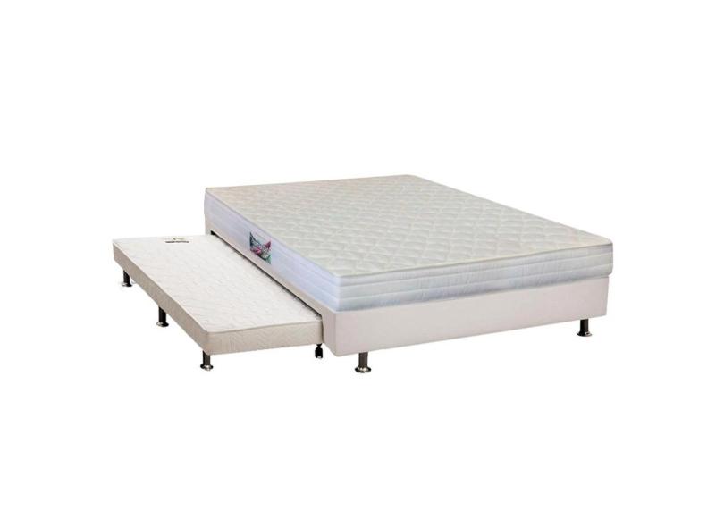 Cama Box c/Auxiliar Casal: Colchão Ortopédico Herval AG65 Frontier + Base crc Courano Branco(138x188)