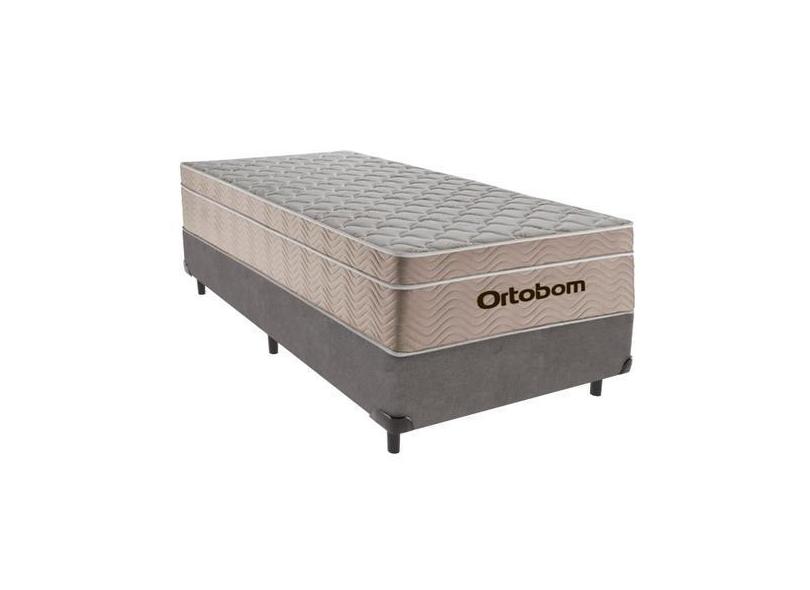 Cama Box Camurça Solteiro Cinza e Colchão Airtech Spring Pocket M. Ens