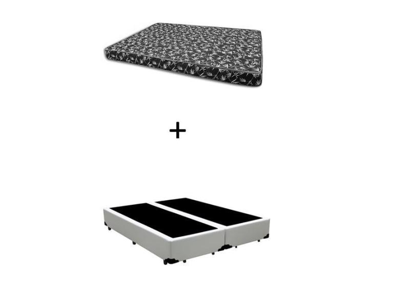 Cama Box Casal 138 Bipartido Bello Box - Tecido Sintético Branco com Colchão New York Preto D28 - 100% Espuma - 54x138x188