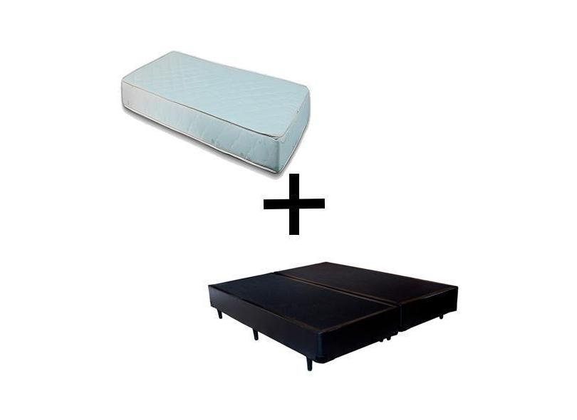 Cama Box Casal 138 Bipartido - Tecido Sintético Preto Com Colchão Muni