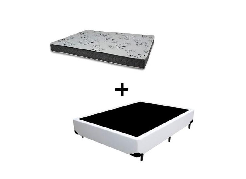 Cama Box Casal 138 Tecido Sintético Branco Com Colchão Miller Bello Bo