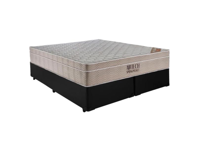 Cama Box Casal Bipartido Sintético + Colchão Ortobom Airtech Molas Ensacadas 65x138x188 Preto