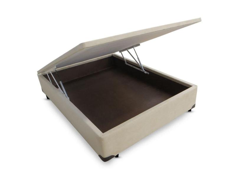 Cama Box CASAL Camurça Bege Bau Pistão Frontal - 138x188