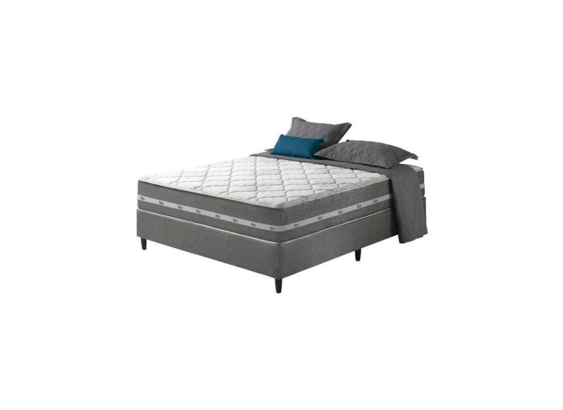 Cama Box Casal Cinza + Colchão Molas Ensacadas Miami Cinza