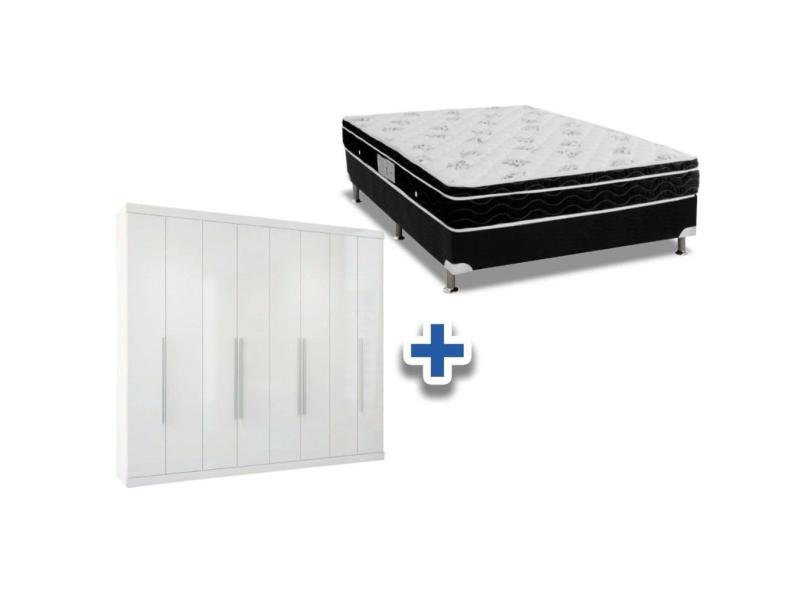Cama Box Casal + Colchão Physical Ortobom + Guarda Roupa Master Vip 8.4 Branco