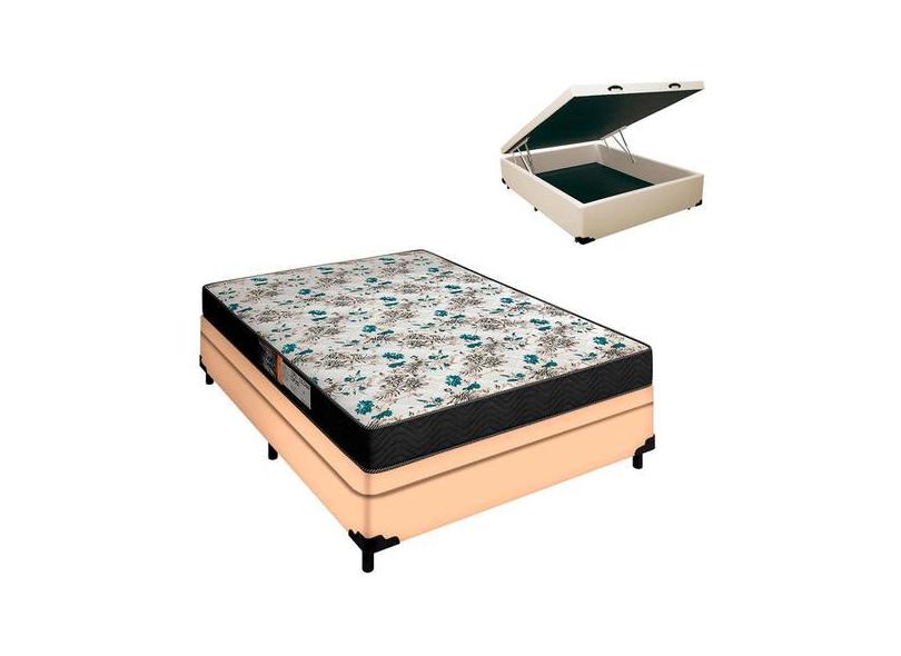 Cama Box Casal Com Baú Bege E Colchão D33 Veneza Portobel