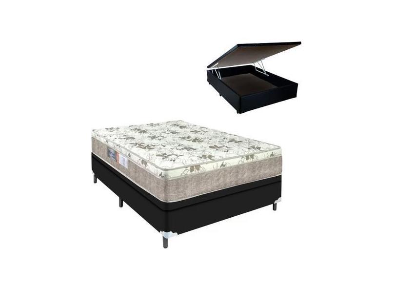 Cama Box Casal Com Baú Preto E Colchão Nápoles Espuma D33 - Portobel