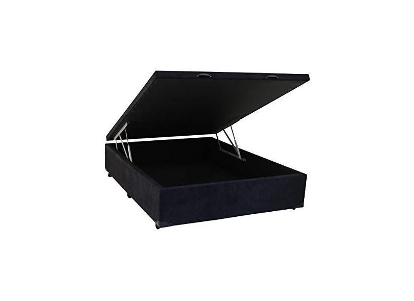 Cama Box Casal com Baú Sonnoforte Luxo Suede Preto com Pistão - 138x188