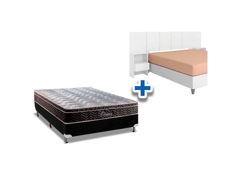 Cama Box Casal Crc + Colchão Molas Olímpia + Cabeceira Tulipa Branco