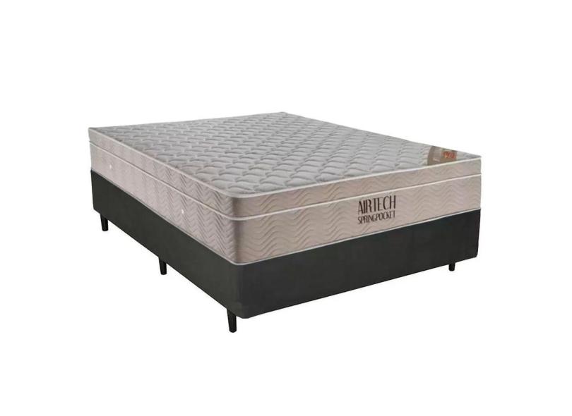 Cama Box Casal Sintético + Colchão Casal Ortobom Airtech Molas Superpocket (65x138x188) cinza