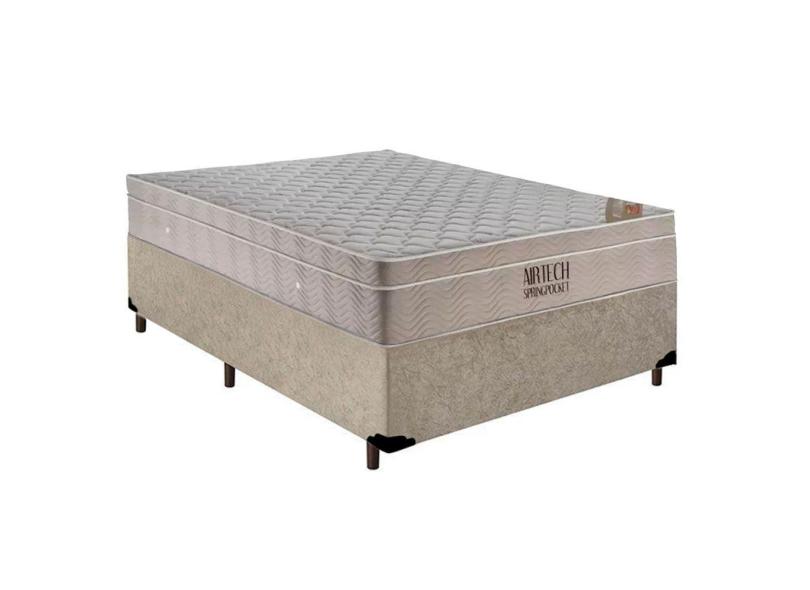 Cama Box Casal Suede + Colchão Casal Ortobom Airtech Molas Superpocket (65x138x188) bege
