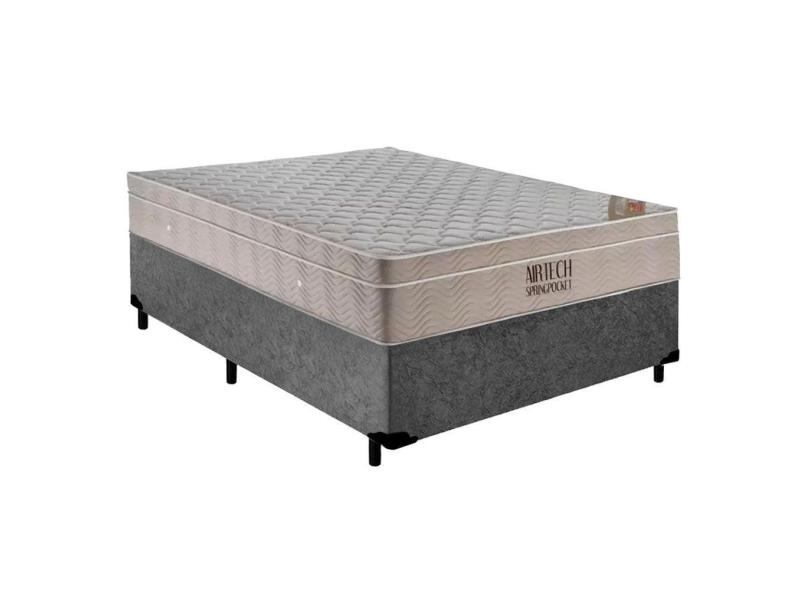Cama Box Casal Suede + Colchão Casal Ortobom Airtech Molas Superpocket (65x138x188) cinza