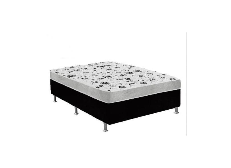 Cama Box Casal Suede Preto + Colchão Casal Suede Cinza Orto Molas Bonn