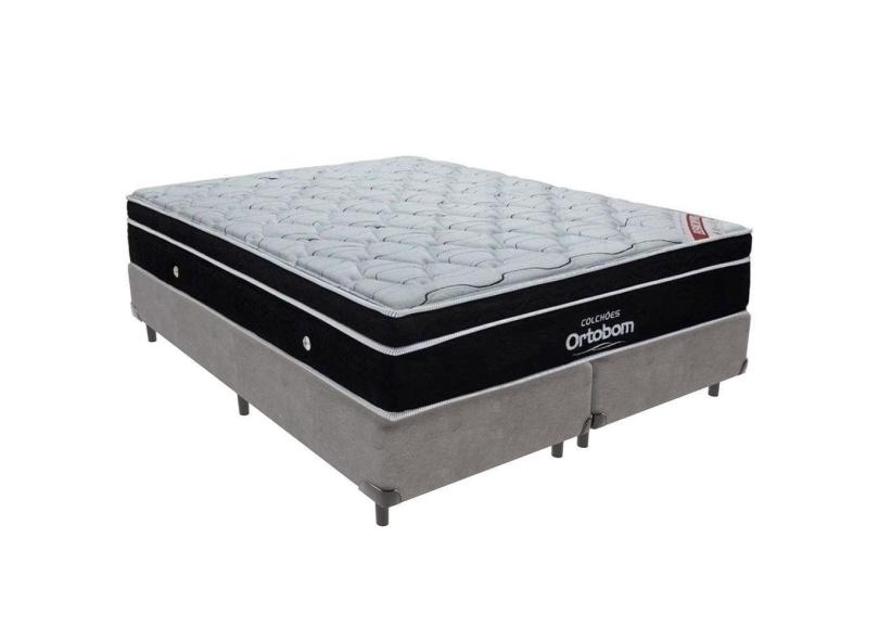 Cama Box Cinza E Colchão Elegant Molas Ensacadas King Ortobom