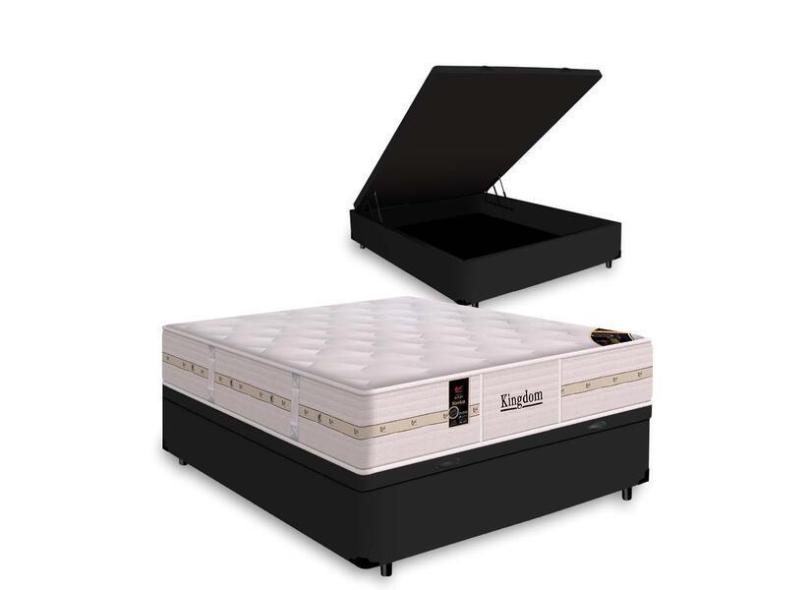 Cama Box Com Ba Casal Preta + Colch o De Molas Ensacadas - C