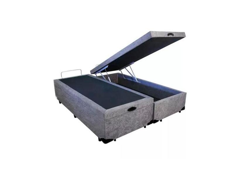 Cama Box Com Baú Bipartido Queen Size Suede Cinza (Blindado) - Real Co