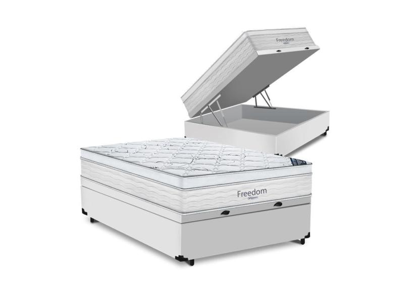 O menor preço encontrado no Brasil para Cama Box Com Baú Casal Blindado + Colchão De Molas Ensacadas - Ortobom - Freedom 138x188x74cm Branco atualmente é R$ 3.072,99.