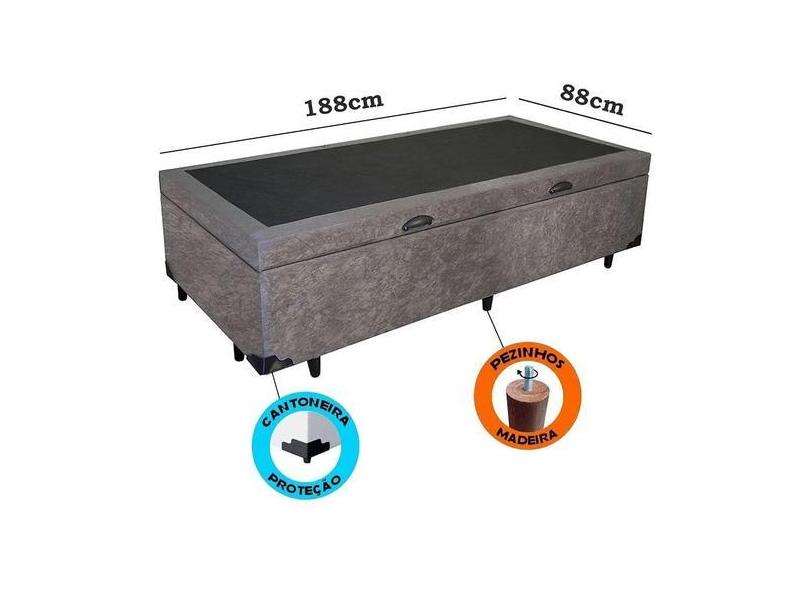 Cama Box com baú solteiro suede cinza - Real Comfort estofados