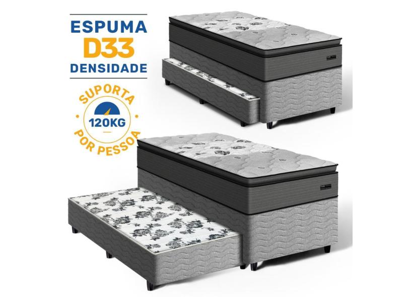 Cama Box com Colchão de Espuma D33 Pillow Top Resistence + Auxiliar de Molas Unique Solteiro 88cm